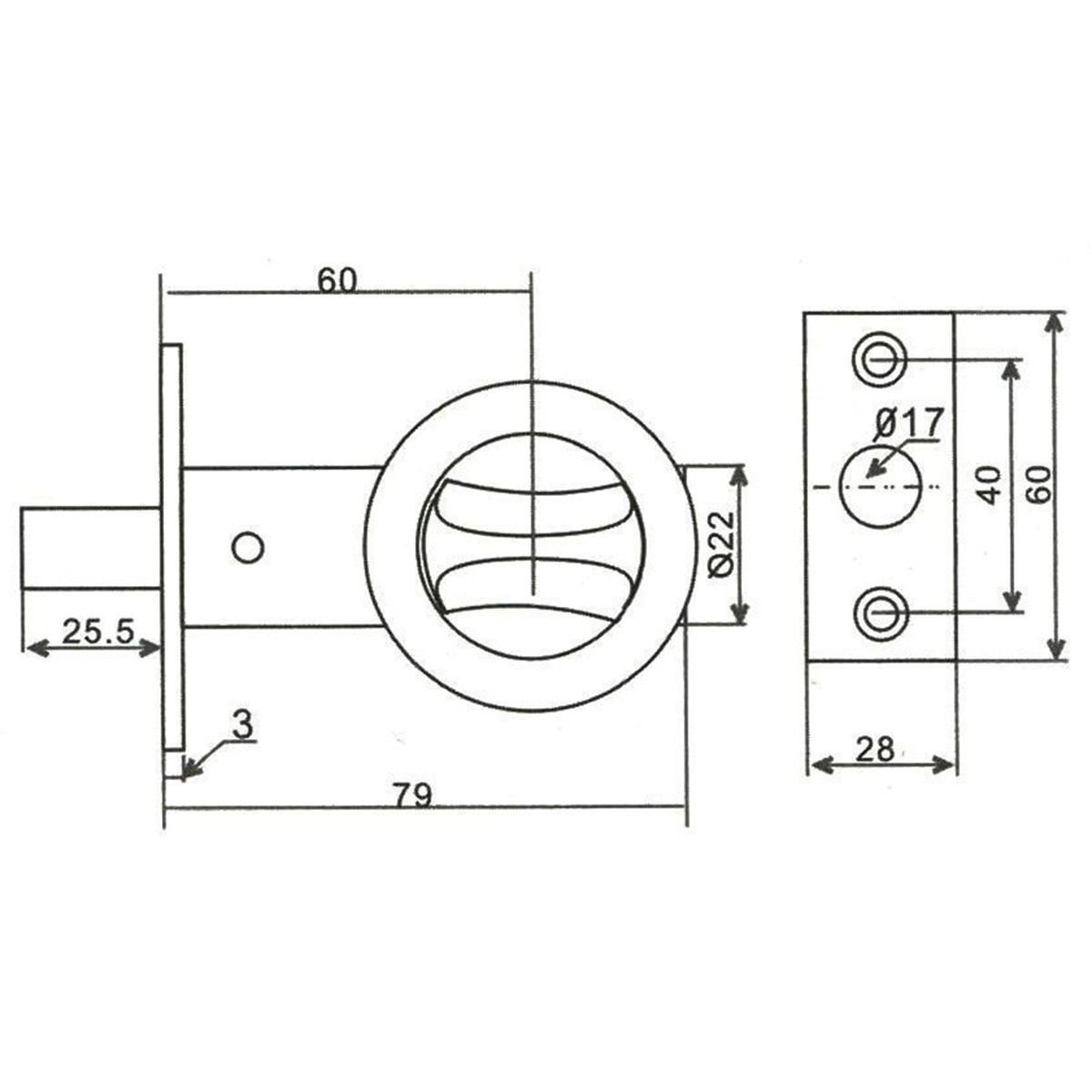 Засувка для вхідних дверей 256 BN (шліфований нікель)